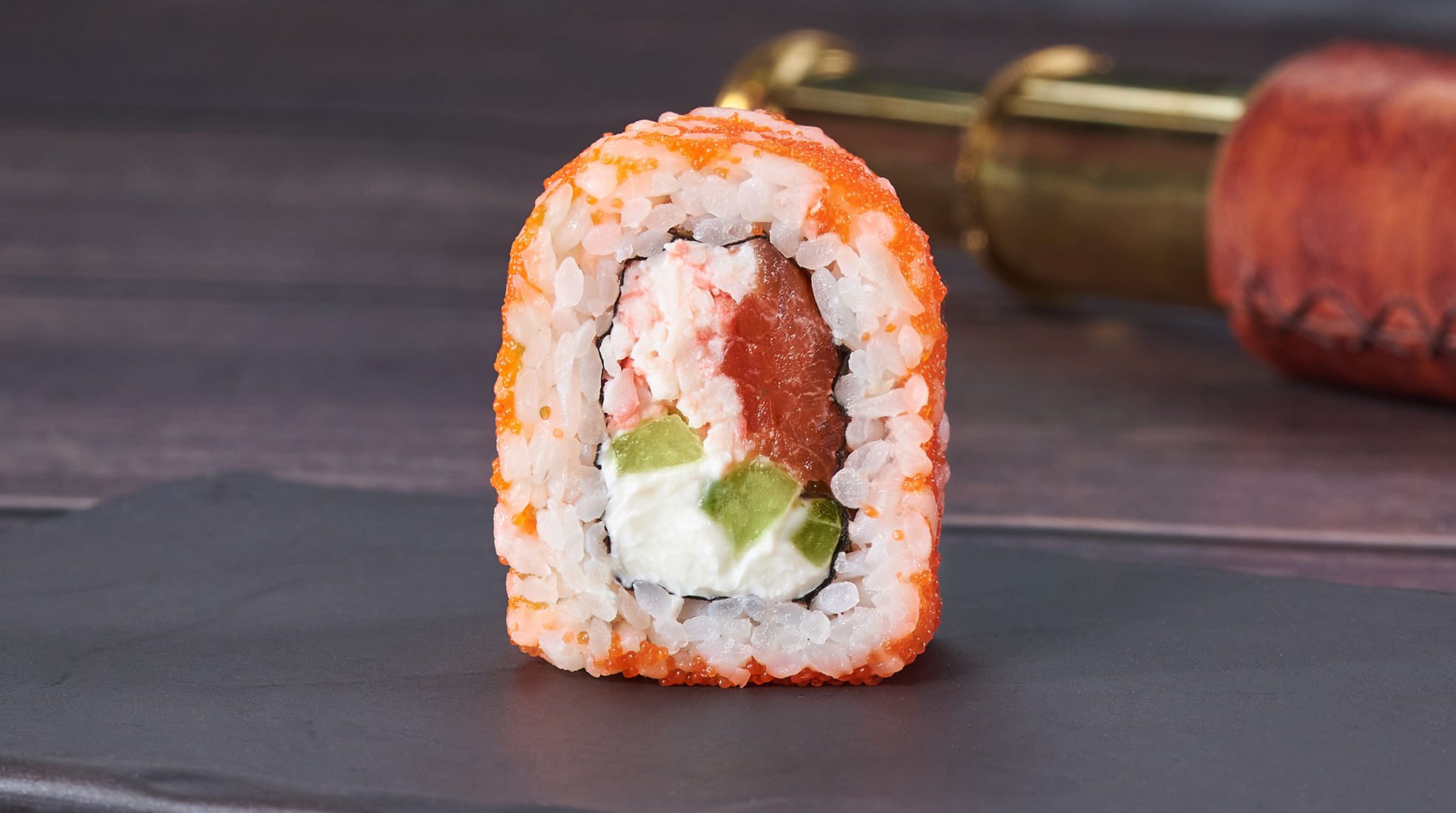 Состав: Лосось, краб, крем чиз, огурец, икра масаго, рис, нори. Не забудьте заказать имбирь, васаби и соевый соус. Они не входят в стоимость заказа. *Внешний вид блюда может отличаться от фото на сайте.